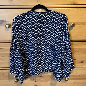 Loft ikat/batik tie dyed navy flowing open coverup top in medium-large size