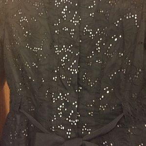Beautiful black eyelet with cream lining. Jacket has hidden buttons all the way down and ribbon sash tie at the waist. Full length sleeves. This jacket is a size 0 PETITE. Excellent condition! • No trades. No PayPal. • SHIPS SAME OR NEXT DAY!