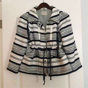 Loft blue and white striped jacket. It can be cinched in the middle. Cute snap pockets, pulls and zipper. Good condition. Smoke free home.
