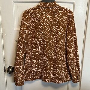 Pre-loved excellent condition jacket by Loft size Large, beautiful print, a blend of cotton and spandex, nice chunky buttons down the front.