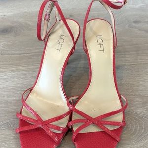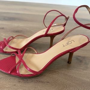 Loft strappy lizard patterned leather heels with ankle strap - hot pink. Very gently used, no damage anywhere. Size 8M. No box.