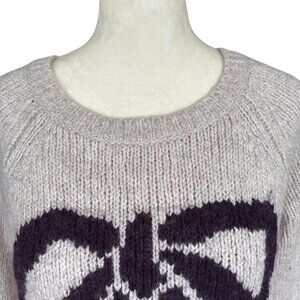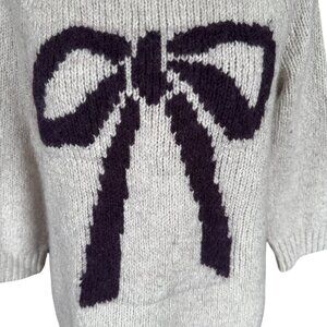 Women's Loft linen colored 3/4 sleeve pullover bow sweater, size small. This is stretchy with a round neckline and ribbed edges. Excellent condition and from a smoke free pet free home. Quick shipper!