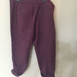 Loft linen burgundy size 10 - fits more like 12. Cute roll up crop with belt. Never worn. Was in storage.