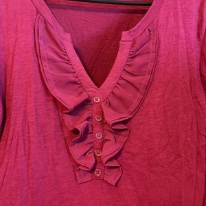 Plum Loft long sleeve v neck ruffle shirt. Medium