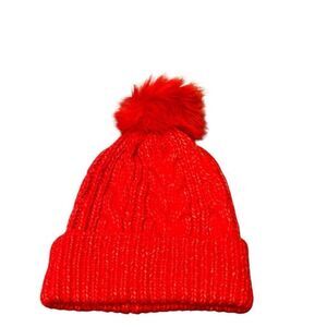 Includes loft Pom Pom red hat nwot and gray beanie pre-owned without flaws.