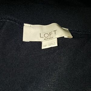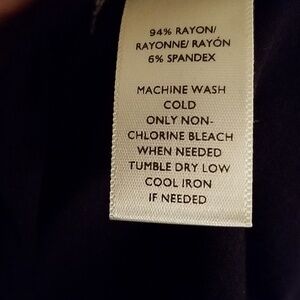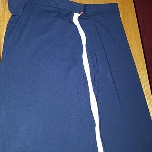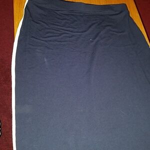 Dark navy blue White stripe on each side of the skirt 16 in waist with full stretch to 24 in. Length 38 in.