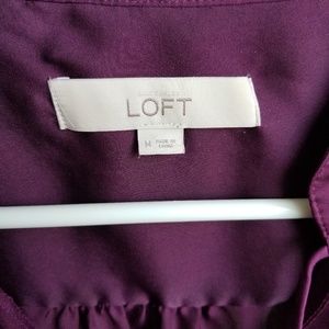 This is a long sleeve blouse, size medium, from Loft. The color is a purple/red but more on the purple side. The bottom of the sleeves are bunched due to elastic. I like to slide the sleeves up to make it more of a 3/4 length sleeve. There are ties on the front collar.