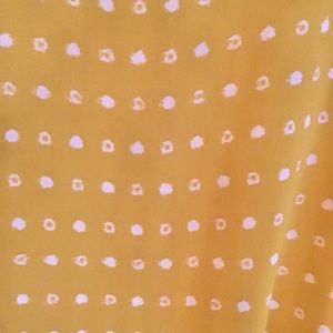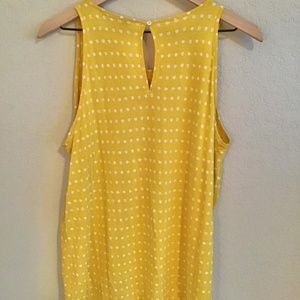 Yellow top with white dots, mixed media, sleeveless, flowy, comfortable Size LP, pit to pit 21” Gently worn - no rips, holes or stains Weekend, work, lightweight, loose fitting, flowy, summer, fall, spring, beach, cruise, vacation, school