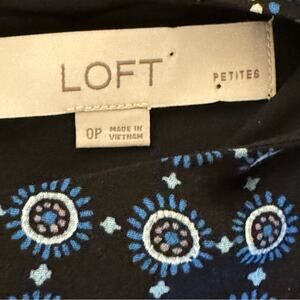 Loft navy and floral flower long sleeve shift mini dress size 0 petite b25
