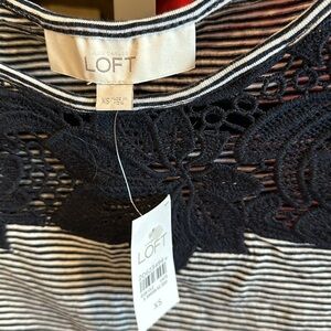Loft navy and white striped/lace sleeveless t shirt size XS NWT​