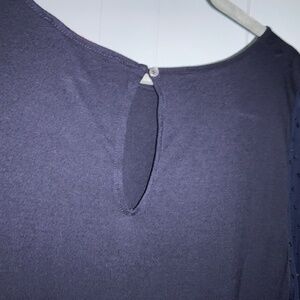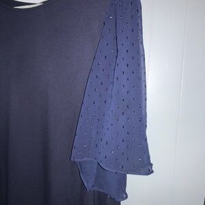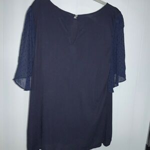 Loft navy knit blouse Sz M sheer glitter flutter sleeves keyhole back
