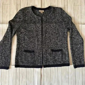 Loft open front marled cotton blend lady jacket cardigan with pockets