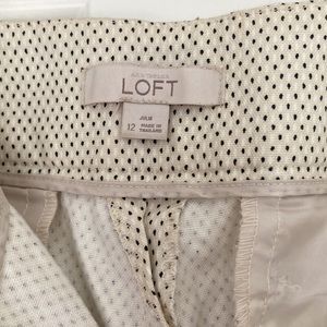 LOFT pants polka dot black white and ecru Size 12 No side pockets only back pockets Ankle length loose fit