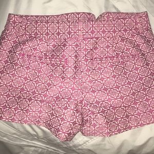 Pink and white geometric patterned shorts from Loft; size 0