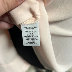 Loft peach button down blouse with ruffle long sleeves and neck.