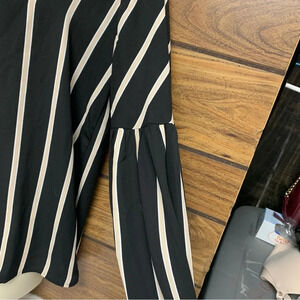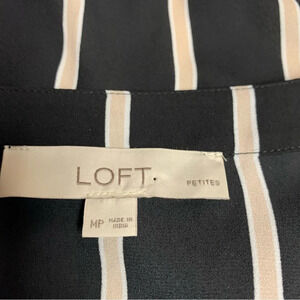 Loft petites medium blouse black/tan/cream buttons cuffs