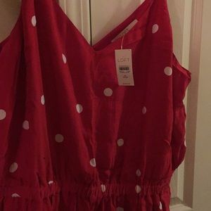 Never worn loft jumpsuit. Pink and white just in time for spring!
