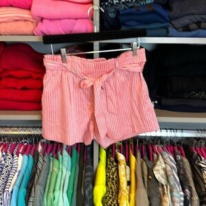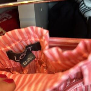 Loft pink and white striped elasticized waist/tie front size 00 4 1/2” shorts