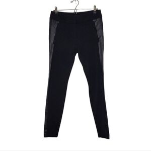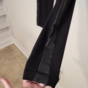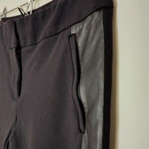 Loft ponte stretch pants faux leather tuxedo stripe black 6
