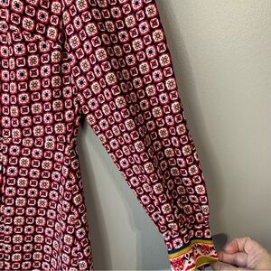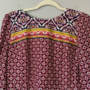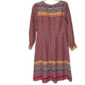 Loft red and navy abstract mosaic square print long sleeve shift dress. Size 8P