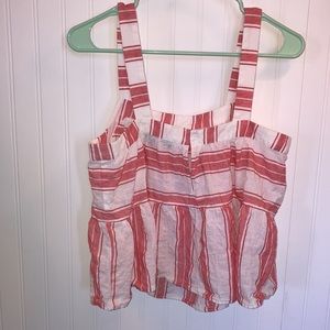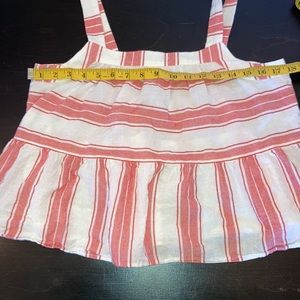 Loft red and white stripe babydoll cotton crop top sz M EUC