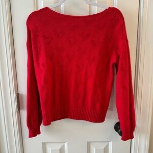 Loft red heart print bateau neck sweater balloon long sleeve cotton blend Sz XS
