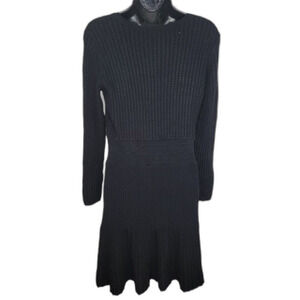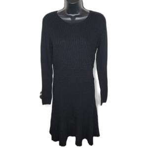 Loft ribbed fit and flare black sweater dress medium