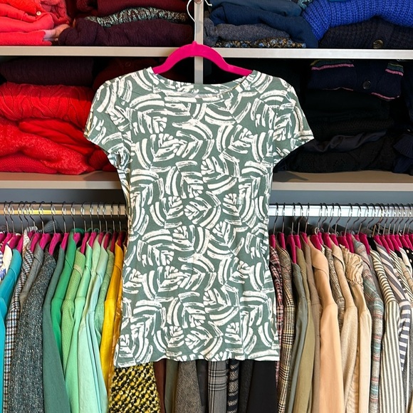 Loft sage and white print short sleeve scoop neck t shirt size XS
