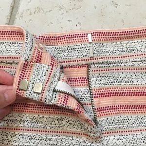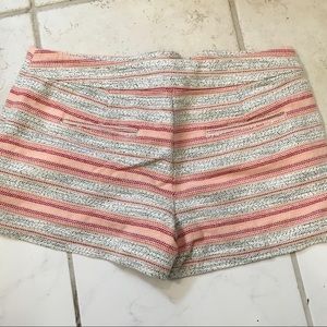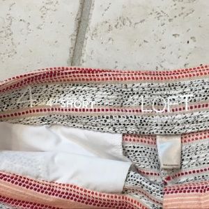 Super cute shorts from Ann Taylor loft. 4”short inseam. They are thick and have a zipper and clasp closure. Real pockets on front and back. Color scheme is cream, black, peach, and red. Minimally worn and in great condition.