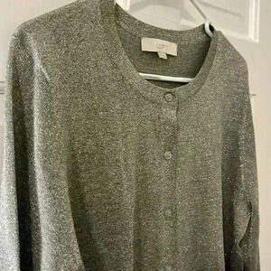 Lightweight silver metallic cardigan from Loft Sz Large. Perfect for the holidays.