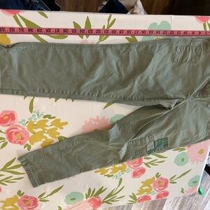 Life-size 10 olive green cargo cropped pants the additional pictures for measurements in inches. Thanks for looking happy shopping, adorable, patch detail.