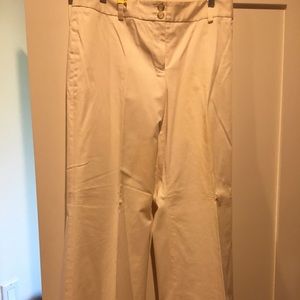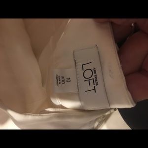 Loft size 10 winter white lined trouser pant. Worn a few times. Has small Stain on bottom of pant thst touches ground. Can't see. Very cute.