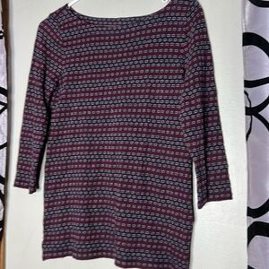 Loft size XS wine print 3/4 sleeve boatneck striped top