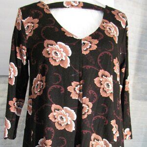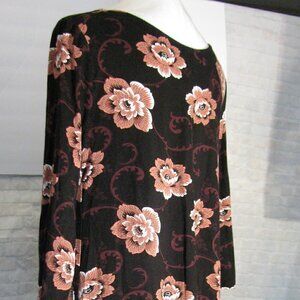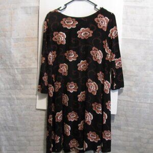 Loft size medium (US reg) Swing Dress, back keyhole/bar w/cinnamon and blackberry flowers, designs. Knee length. 3/4 sleeves.