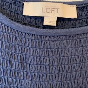 Loft slate blue, flutter sleeve smocked tee blouse, Size M