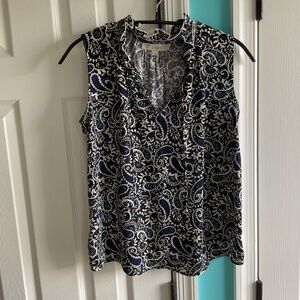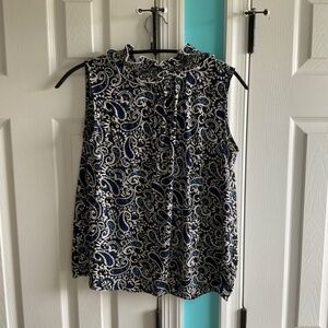 Loft paisley tops, polyester front, rayon back. Both have different neck and front details, both tie in front.