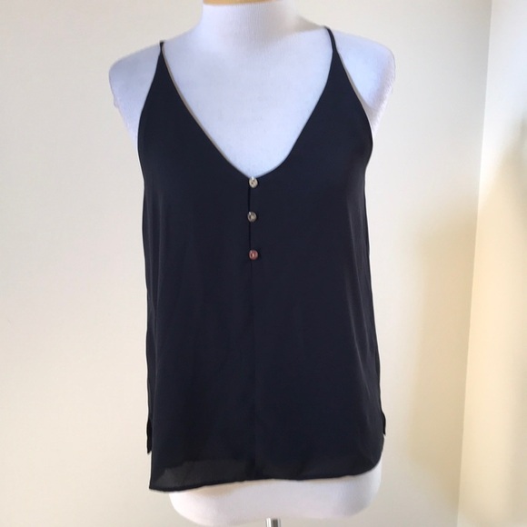 Loft small black light weight tank top. Lined and has front gold metal buttons, gently used.