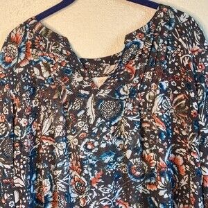 Loft spring rose sheer floral bishop sleeve whimsical low L blouse fairy