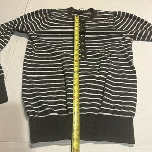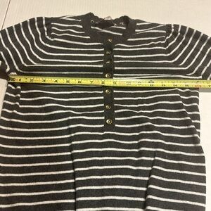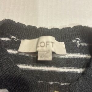 Loft striped gray and white sweater with gold buttons and ribbed cuffs & waist