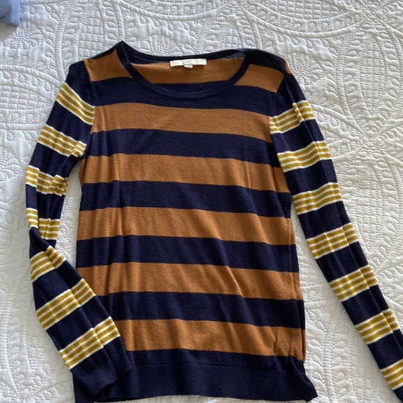 VGUC fitted sweater from loft. Colors are gold, navy, brown and white. Super cute with skinny jeans and booties.