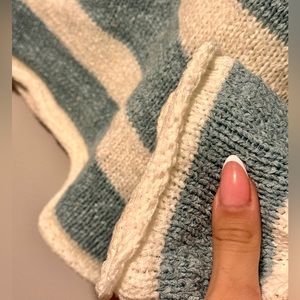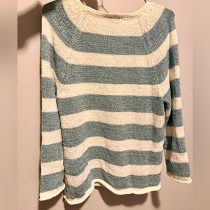 Loft outlet aqua green and white striped cable knit sweater