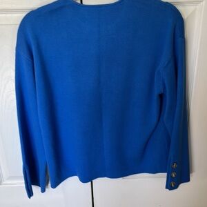 Royal blue sweater new with tags. Wide sleeves with working buttons. Chest measures 20” across, sleeves are 20” from shoulder, and 23” from shoulder to bottom of sweater