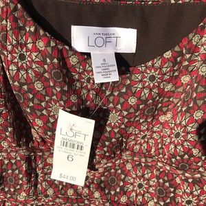 Red and brown printed Loft tank by Ann Taylor. Full lined with side zip closure. Easy care polyester. NWT