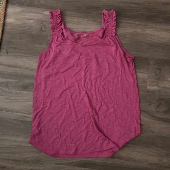 Ann Taylor Loft tank size small, purple/magenta. Fits like a 4-6. Embellished ruffle straps
