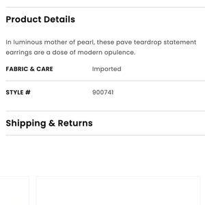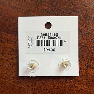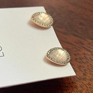 Ann Taylor LOFT "Pave Mother Of Pearl Teardrop Stud Earrings" with iridescent gemstone. Medium size and versatile style that dresses up or down. NWT; please note the brand card includes a handwritten sale price in the corner, and one of the posts seems slightly bent at the tip from shipping. I did not touch it or attempt to correct that, and it should not affect wear.