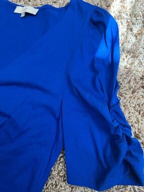 Euc, royal blue color Loft tee. Vneck, short sleeve, ruched. Length from shoulder to bottom is approx 25” and armpit to armpit is approx 16.25”