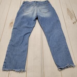 Cute Loft "The straight Crop" jeans! Lighter wash with natural distressing and a raw hem. Gently worn, just have a faint mark on leg. Size 4/27