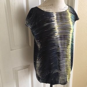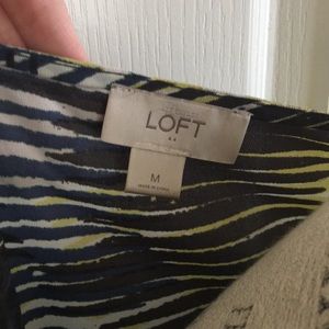 Previously used Loft top. Size M. In very good condition, was only used a few times. Short sleeves. Colors on top are blue, black,yellow, white.
