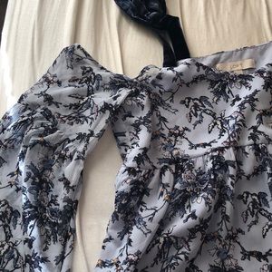 Loft cold shoulder top with velvet accents. Super cute floral pattern 💙 Great condition!