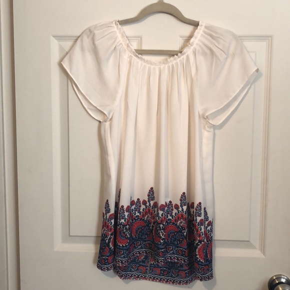 Cute Loft top! White with floral pattern around the waist line. Great condition! Can be dressed up or dressed down!